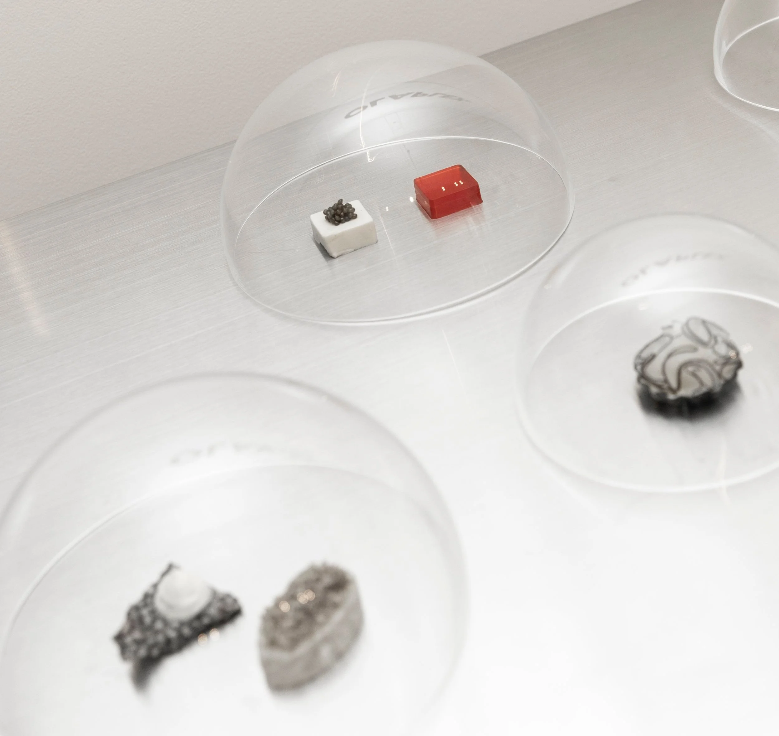 Heirloom Tomato Orb - filled with tomato water and basil, wrapped in smoked mozzarella.